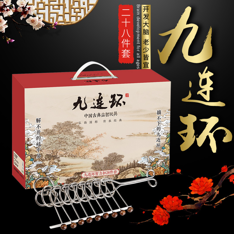 Sembilan rantai intelektual gesper membuka setelan dewasa logam membuka Kong Ming kunci Luban kunci mahasiswa dekompresi mainan pendidikan