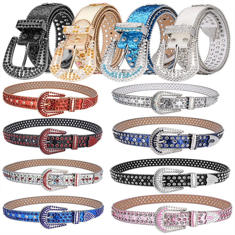 Sabuk Pasangan kekasih gaya punk, sabuk jins wanita dengan sabuk berlian imitasi, sabuk keling pelajar trendi, sabuk pasangan modis Eropa dan Amerika
