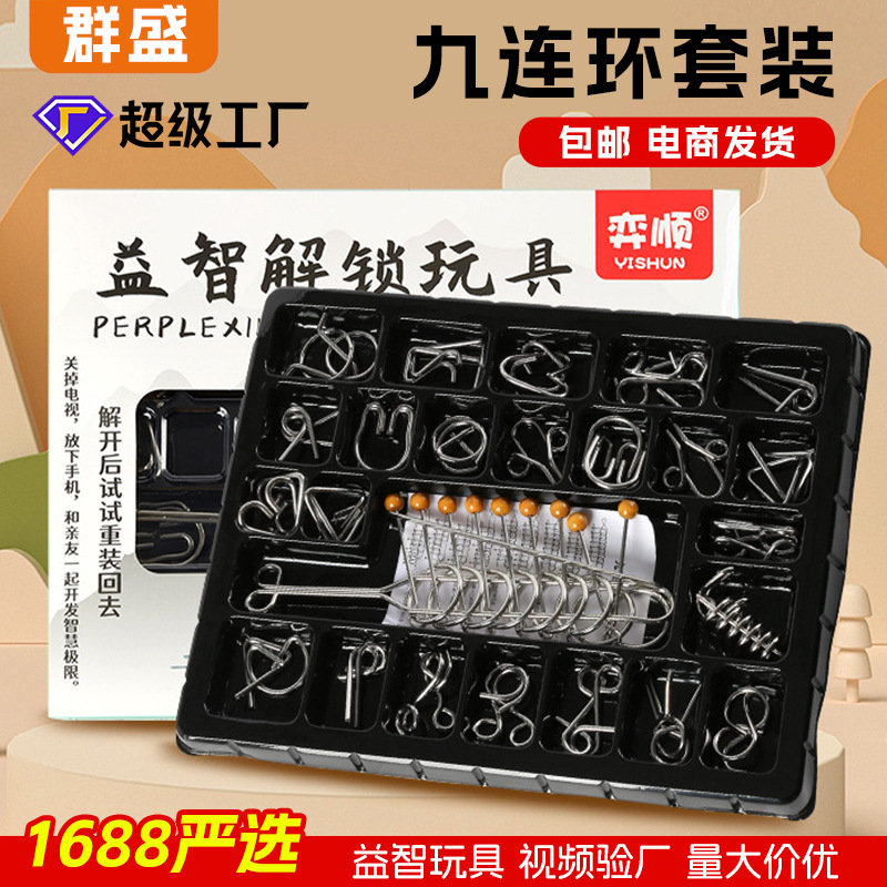 Sembilan rantai intelektual gesper membuka setelan dewasa logam membuka Kong Ming kunci Luban kunci mahasiswa dekompresi mainan pendidikan