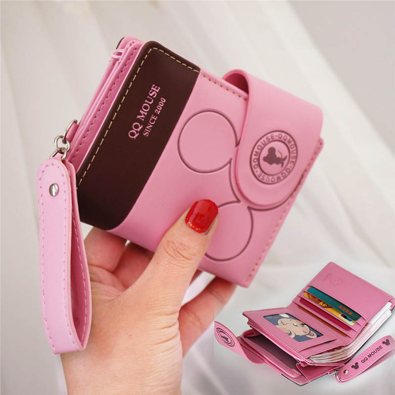 Priti dompet wanita populer tali pergelangan tangan sederhana pendek wanita dompet koin siswa ritsleting kartun Korea lipat