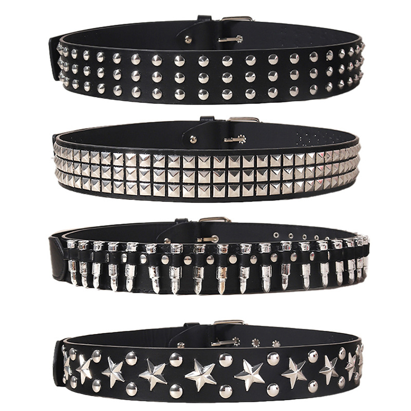 Ikat Pinggang Keling Ikat Pinggang Hitam Celana Jeans Bullet Bullet Bintang Pentagram Pria Wanita Kepribadian Netral Punk