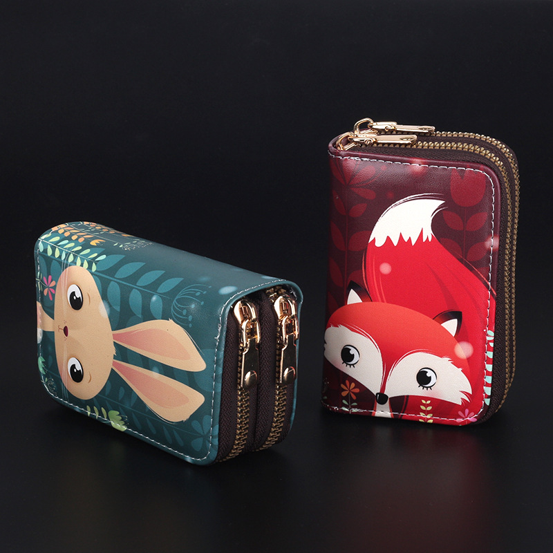 Tempat kartu ritsleting ganda perempuan tempat kartu kapasitas besar Lucu tempat kartu SIM dompet koin gambar anime posisi multi kartu