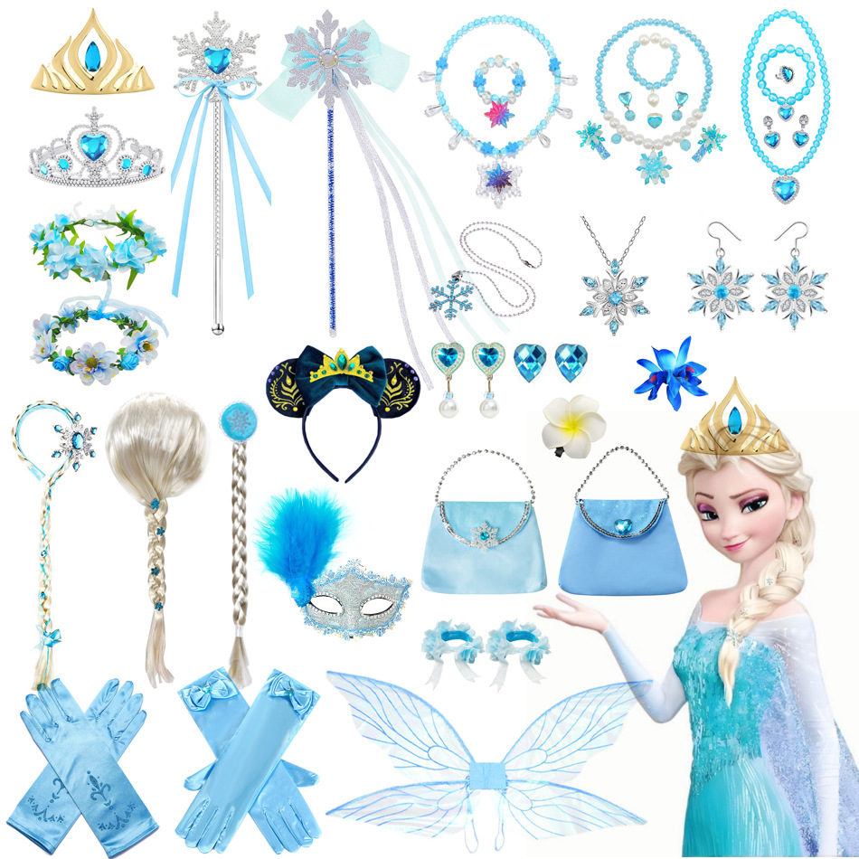 Aksesoris Frozen Aisha Cinderella Aksesoris Cosplay Ornamen Biru Anting Kalung Sarung Tangan Bunga
