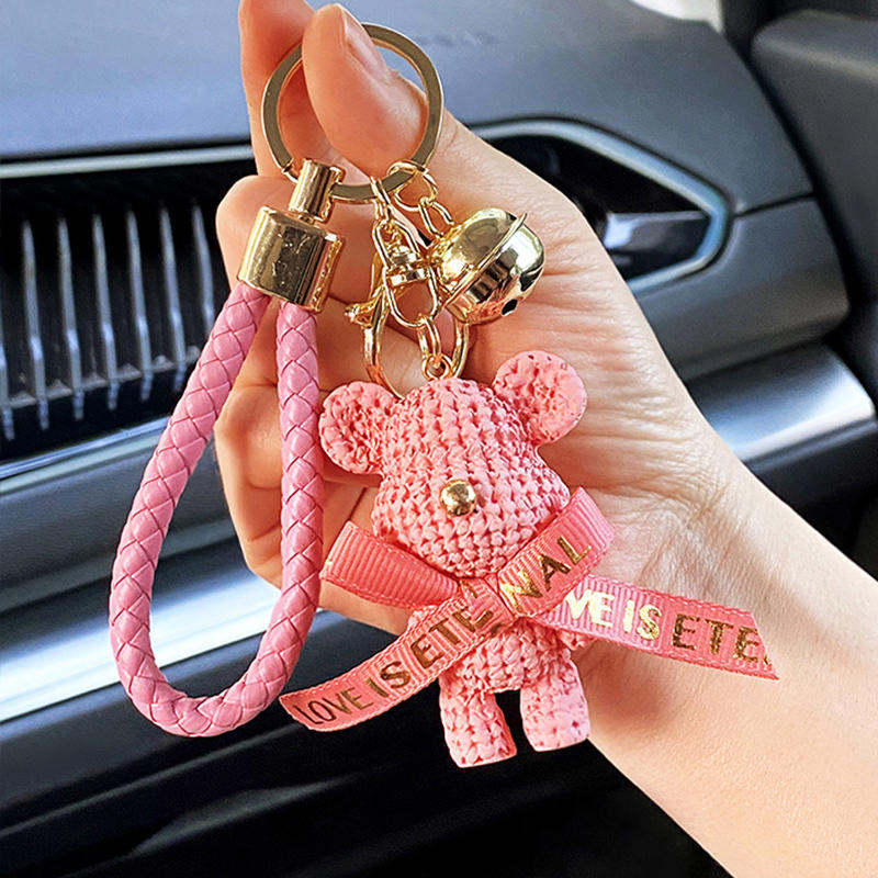 Gantungan kunci Beruang boneka kartun gantungan kunci jaring merah ins Nordik dasi kupu-kupu pasangan liontin tas beruang kekerasan