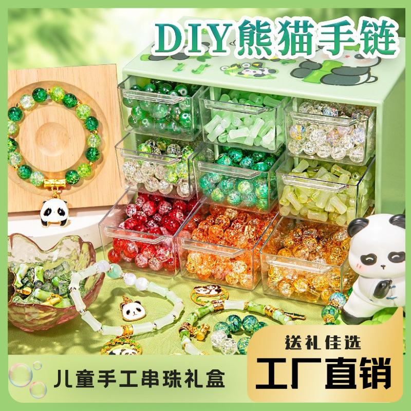Gelang Manik-Manik Panda Aksesoris Bahan Mainan Anak DIY Buatan Tangan Set Hadiah Manik-Manik Dengan Tangan Hadiah Grosir