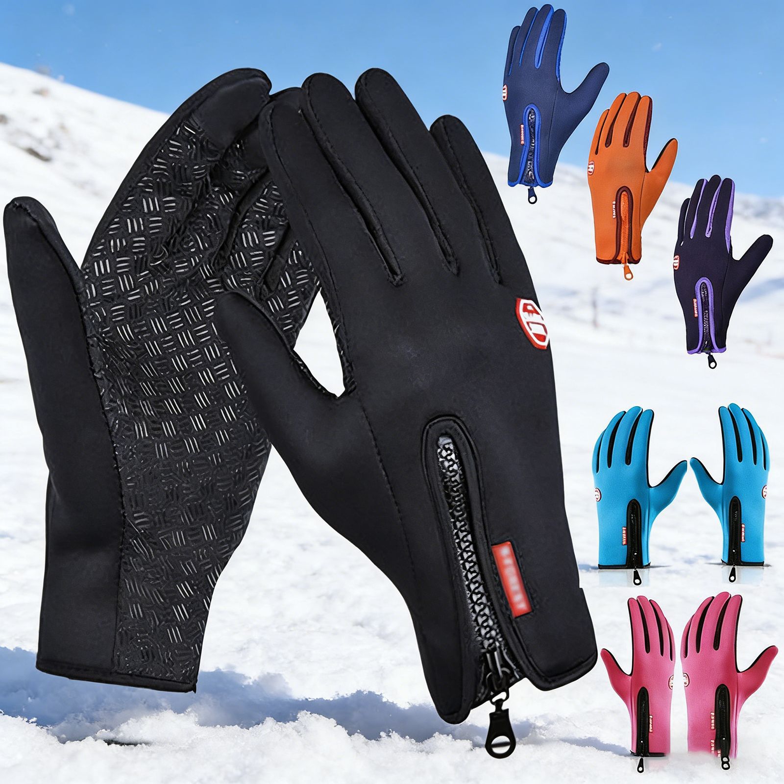 Sarung tangan Ski pria dan wanita, sarung tangan layar sentuh ritsleting, sarung tangan bulu hangat musim gugur dan musim dingin, sarung tangan luar ruangan tahan dingin tahan air
