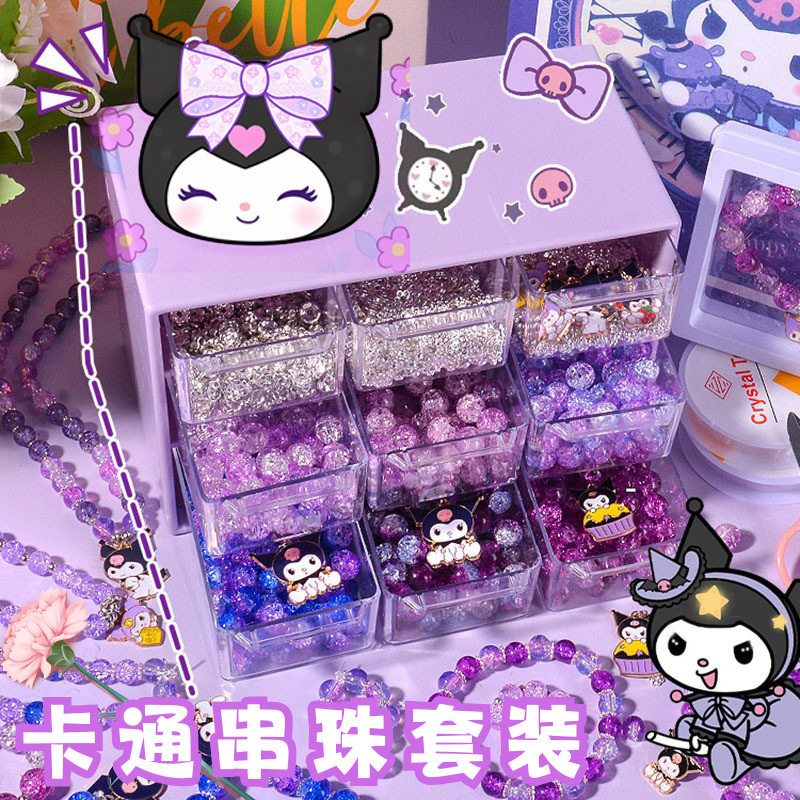 Kolomi Gelang DIY Gelang Tangan Anak-anak Sanrio Manik-Manik Bahan Aksesori Buatan Tangan Perhiasan Set Kotak Hadiah