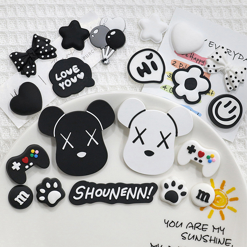 Sepatu lubang pvc kepala beruang kekerasan hitam dan putih Aksesori karet lembut bagasi cangkang ponsel sepatu DIY bahan tambalan dekoratif