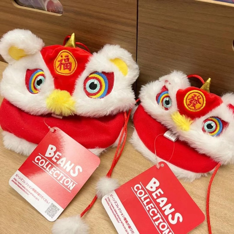Boneka singa Tahun Baru, boneka mewah liontin penutup kepala pakaian untuk jubah tari singa aksesoris penutup kepala