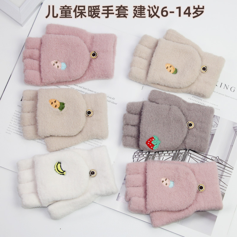 Sarung tangan setengah jari anak-anak, sarung tangan flip hangat lucu kelas siswa musim dingin dapat menulis dengan cetakan