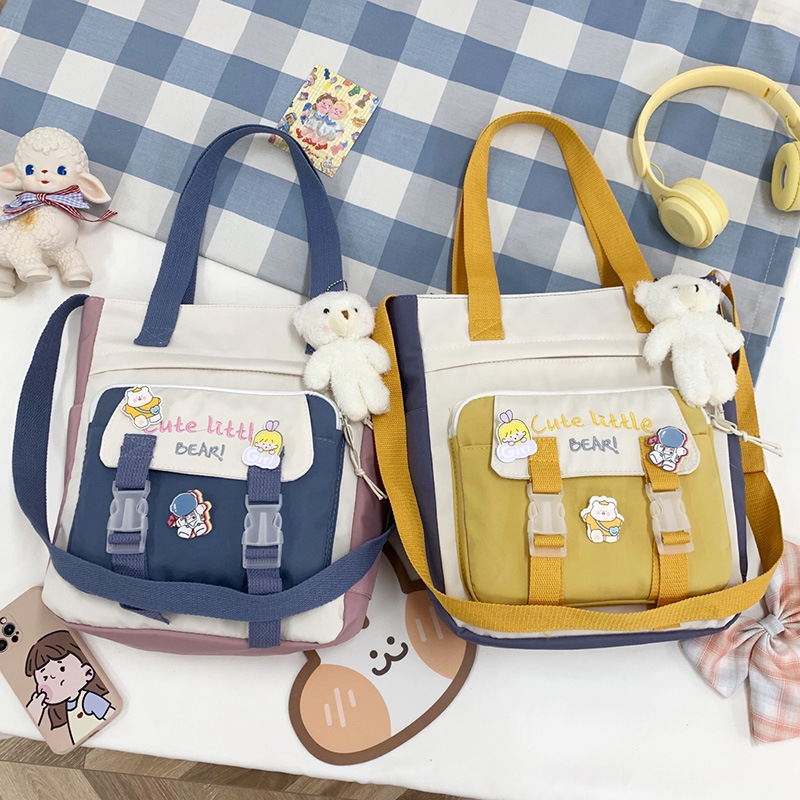 Tas kanvas siswa baru musim semi tas bahu warna solid kartun tas messenger segar kecil tas rias pabrik grosir
