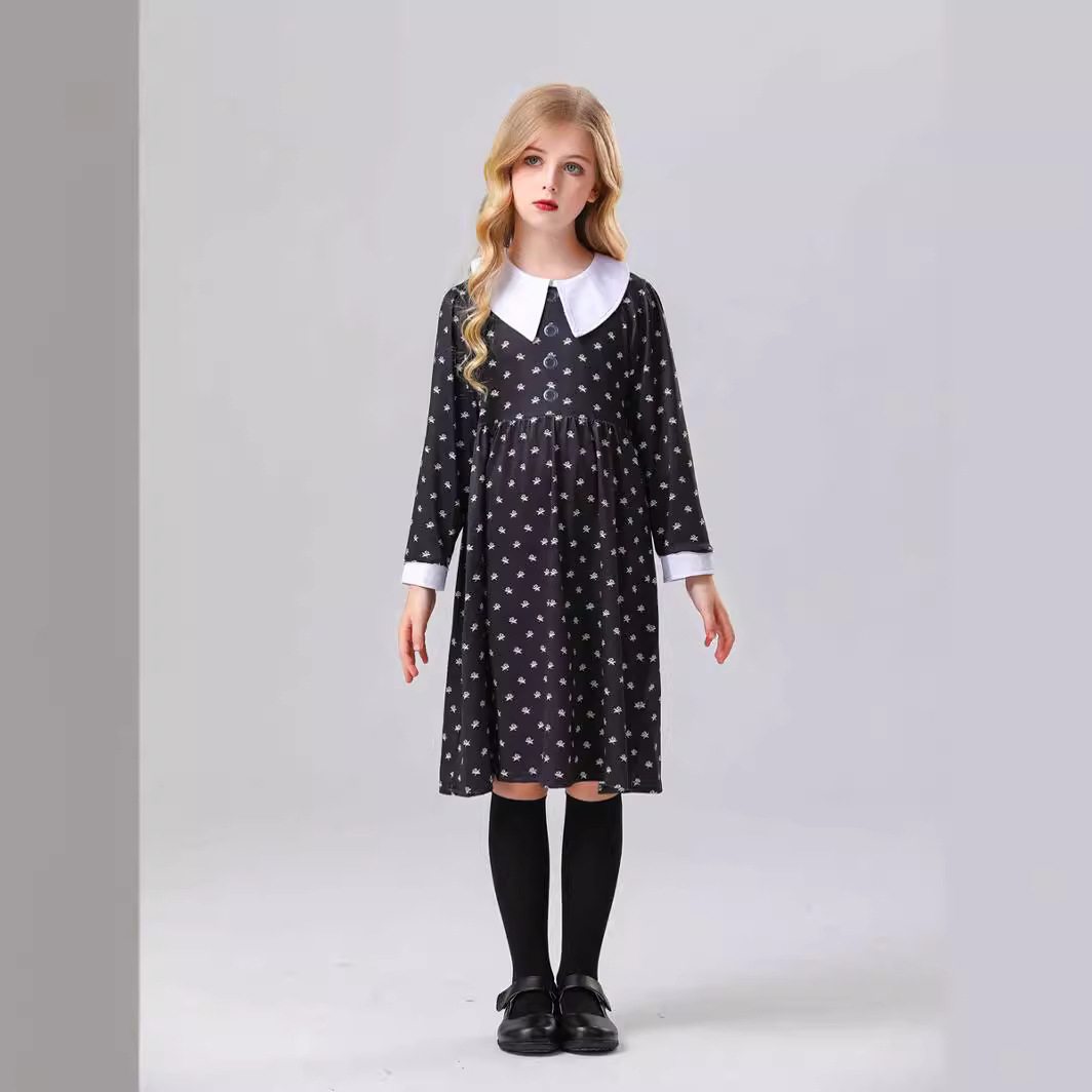 Baju cosplay lintas batas anak perempuan Rabu Adams pakaian cos baju cetak hitam anak-anak