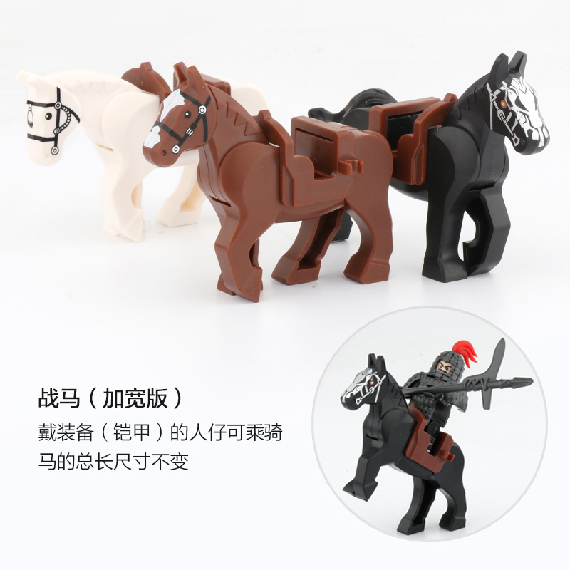 Blok bangunan dirakit aksesoris boneka peralatan baja kuno tersedia perang kuda sadel tiga warna tas perdagangan asing mainan