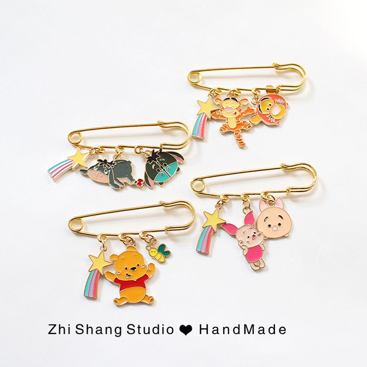 Bros kartun lucu Tigger poop Winnie the Pooh lencana logam anime tas periferal topi aksesoris pakaian