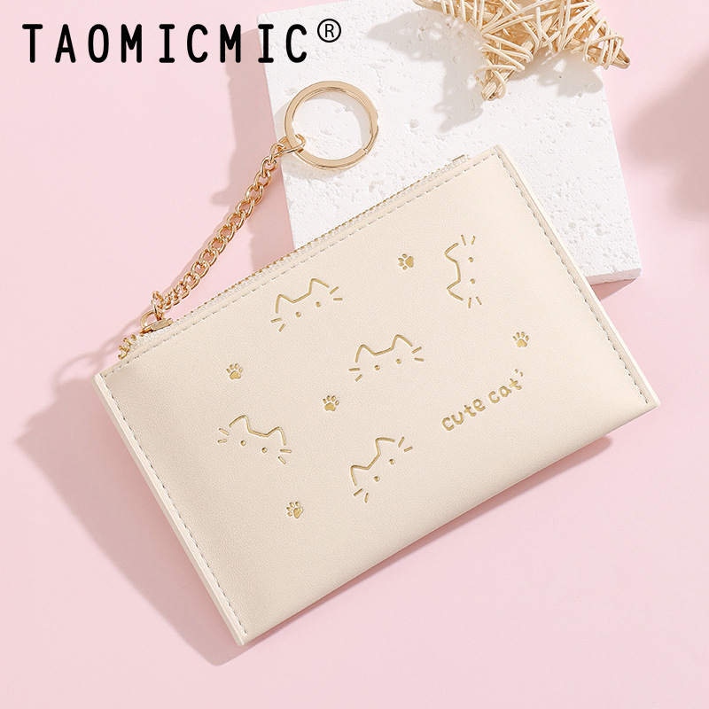 Dompet Uang Koin Gambar Satu Huruf Kucing Lucu Model Baru Dompet Kartu Kontrol Akses Gantungan Kunci Kecil Murid Mini