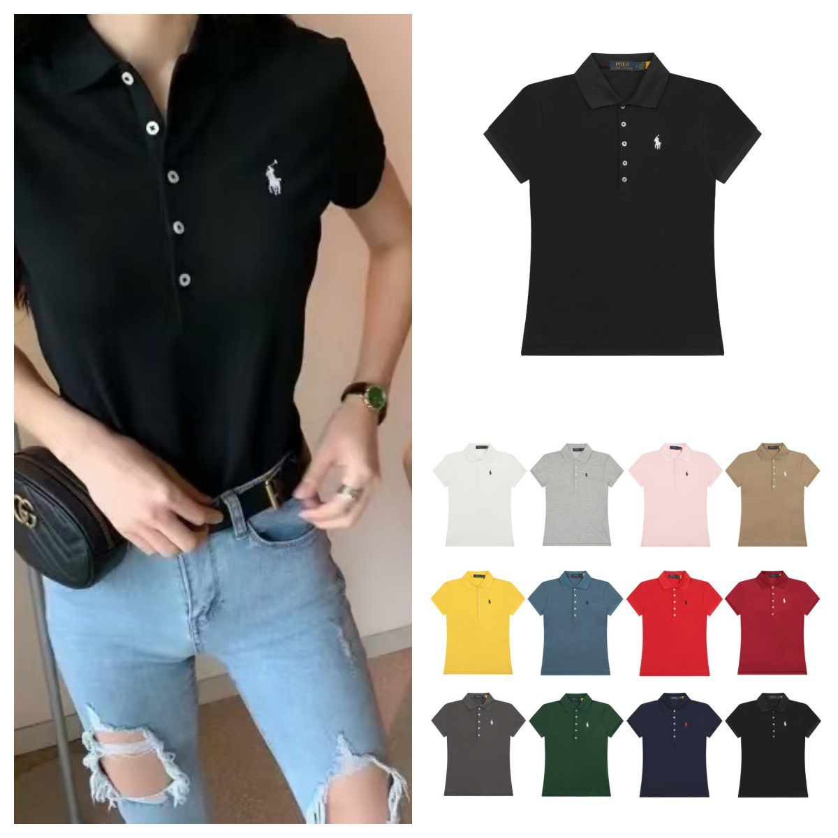 Kaus POLO Lengan Pendek Klasik Kerah Rajut Kerah Rajut Lima Kancing Model Amerika Bordir Label Kuda Kecil Versi Raf