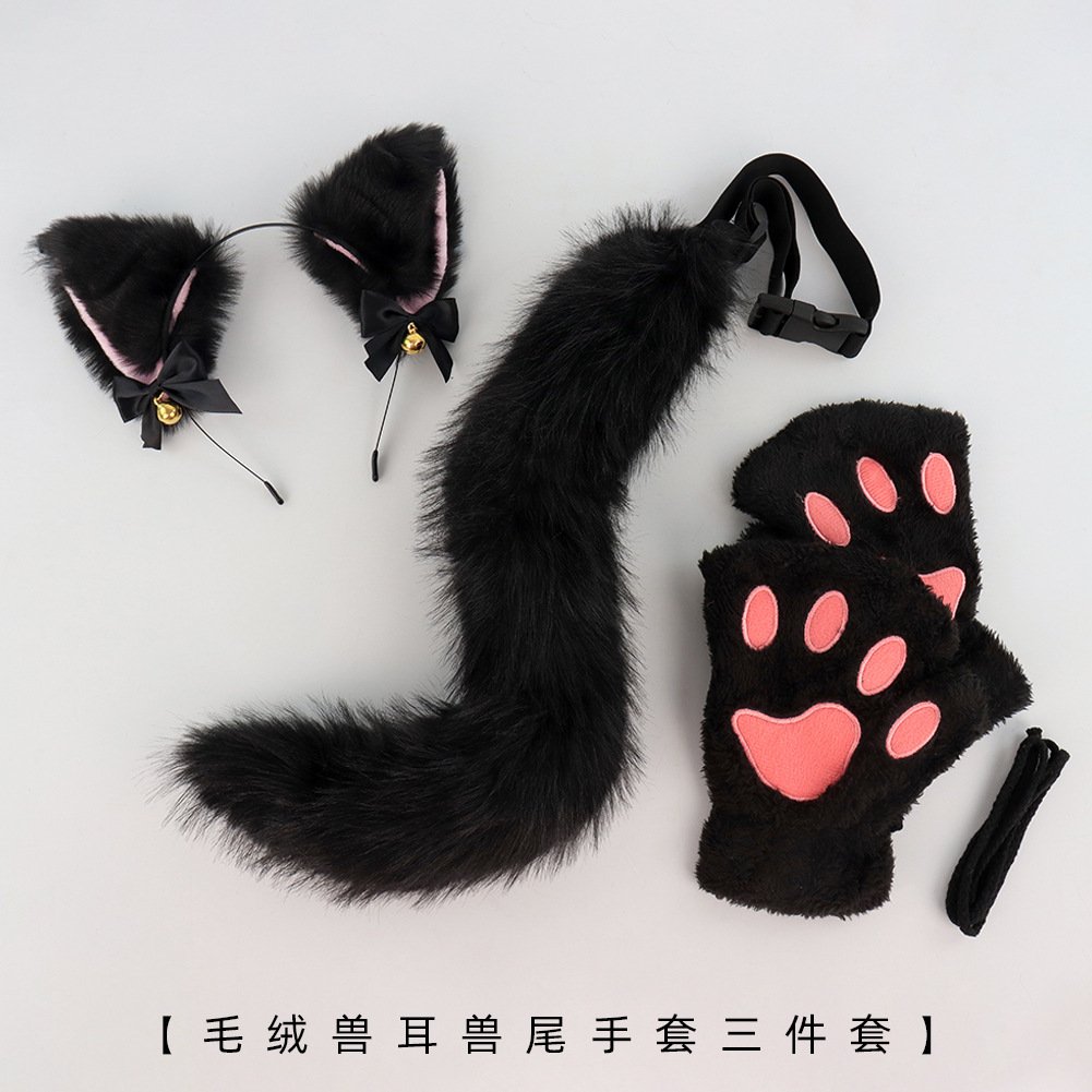 Satu Set Ikat Rambut Ikat Kepala Telinga Kucing Set Lonceng Lucu Sarung Tangan Cakar Kucing Cosplay Aksesori Alat Peraga Ekor Kucing