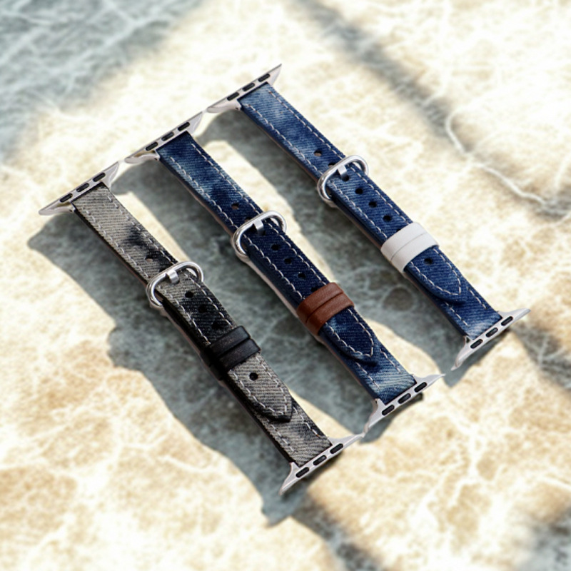 Tali jam tangan Apple kanvas warna kontras tali jam tangan denim yang cocok untuk pria dan wanita tali jam tangan iwatch tersedia grosir 14mm