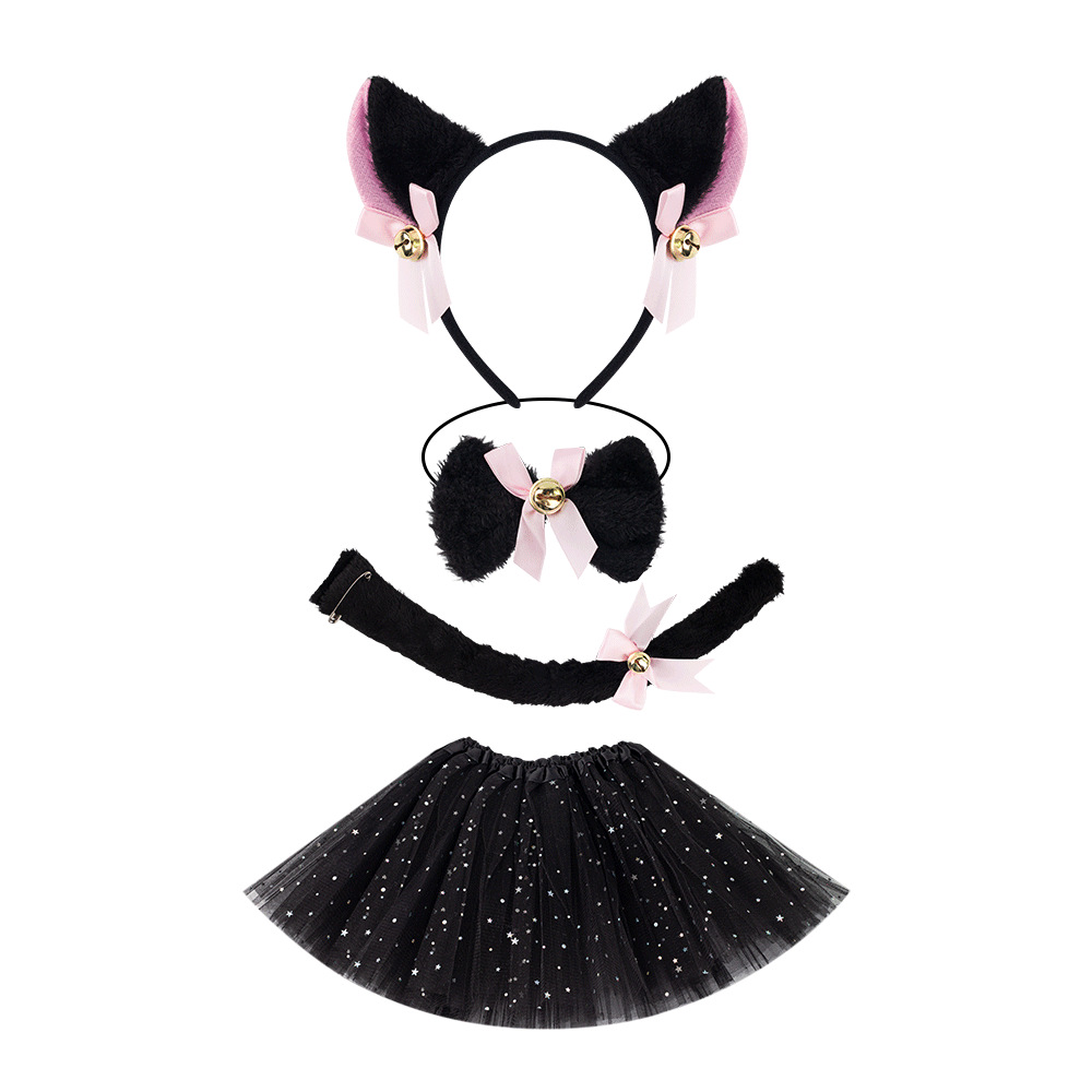 Hiasan kepala hewan Halloween bando kucing komik telinga kucing Aksesori cosplay bel mewah bando gadis kucing