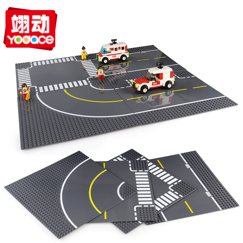 Partikel kecil Crossroad Kota T berbentuk Jalan 32*32 lantai penyambungan blok bangunan aksesoris adegan grosir