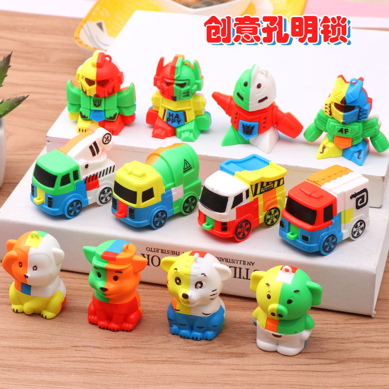 Luban kunci robot hewan blok bangunan mobil Kong Ming lock intelligence perakitan membuka gesper setelan Mainan pabrik grosir
