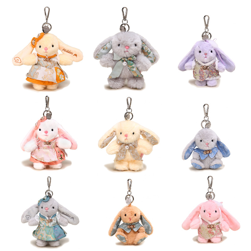 Celana suspender kartun telinga besar gantungan kunci kelinci liontin hadiah ulang tahun boneka mesin mainan mewah grosir