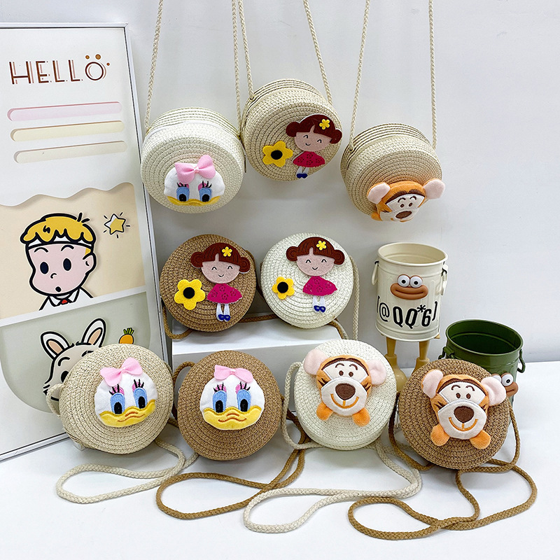 Tas anak-anak baru kartun lucu jerami bahu tas messenger mode putri dompet koin anak laki-laki aksesoris tas bulat