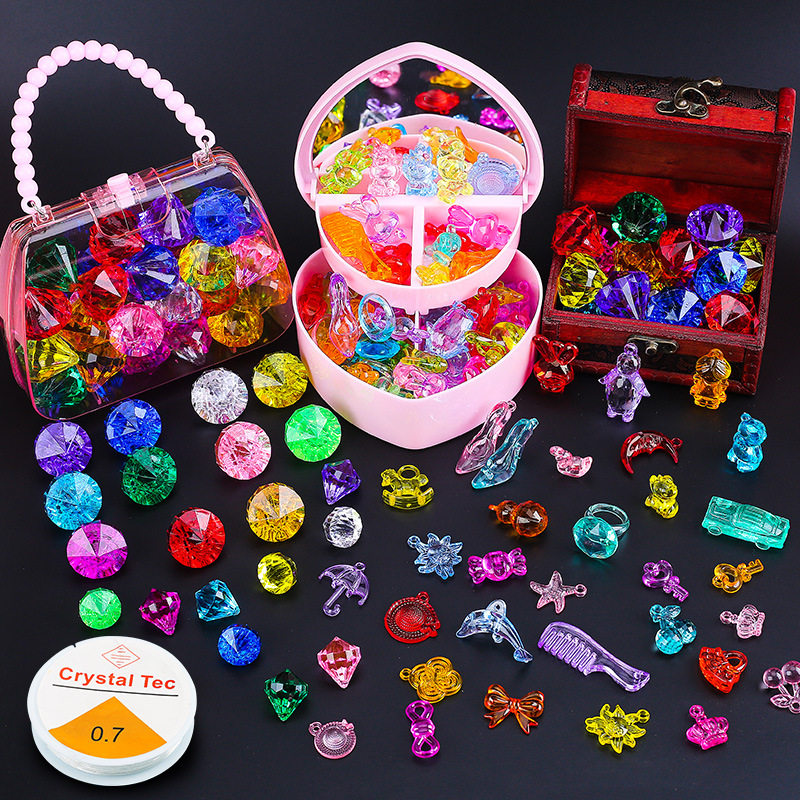 Mainan permata anak-anak perhiasan kristal berlian akrilik kotak plastik putri manik-manik buatan tangan bahan diy