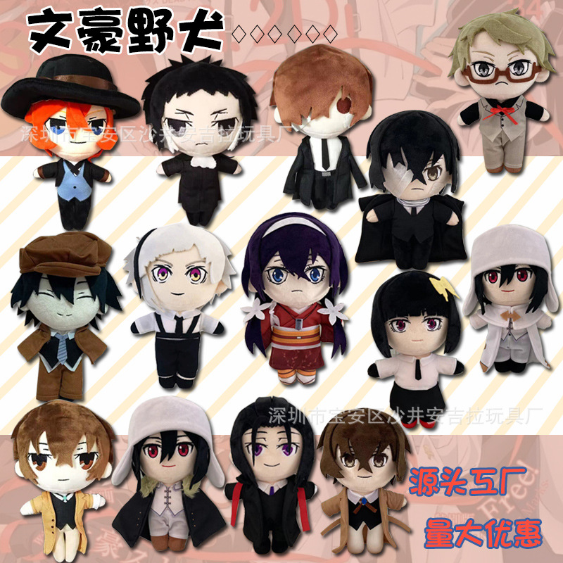 Boneka plush Q version merchandise Bungou Stray Dogs, Dazai Osamu, Nakahara Chuuya, Ryunosuke, cosplay dua dimensi, boneka Bungou
