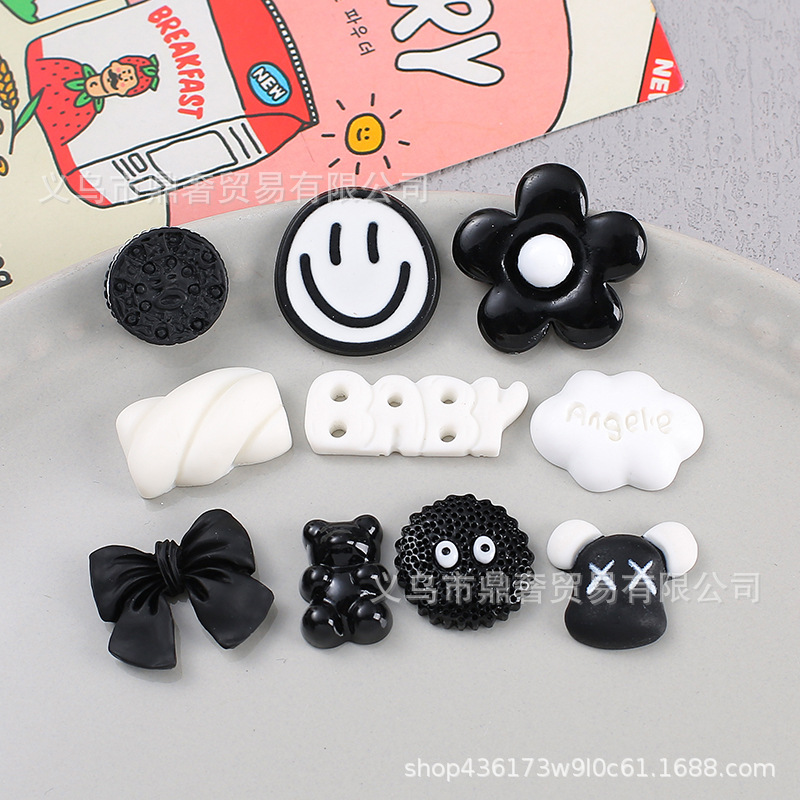 Aksesori Perhiasan diy sepatu lubang senyum beruang kekerasan hitam penutup earphone cangkang ponsel lem krim jepit rambut