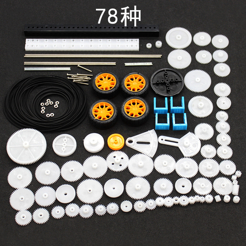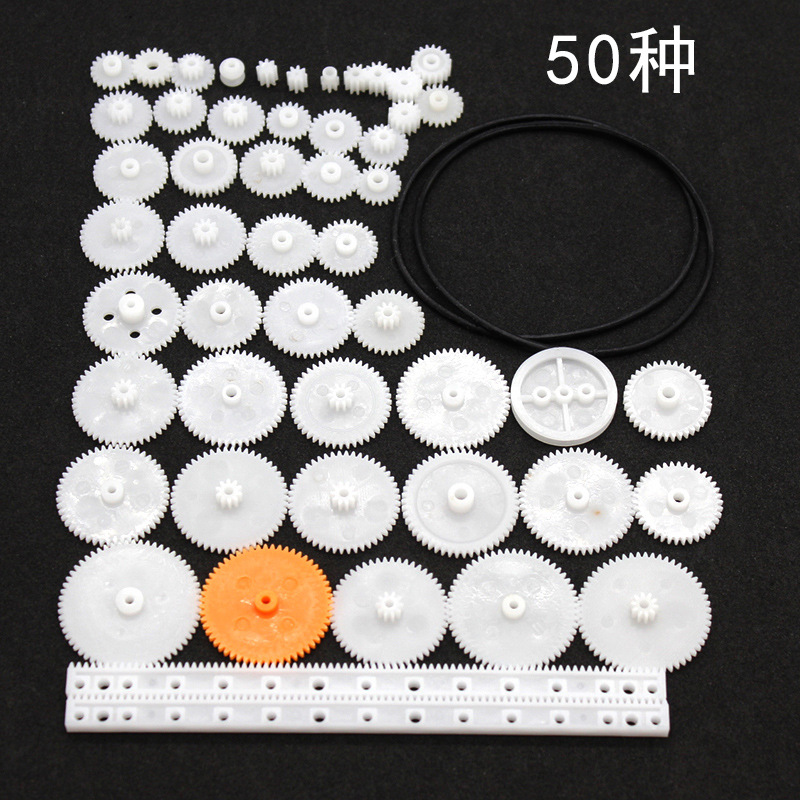 50 jenis roda gigi tas rak teknologi katrol Aksesori mainan produksi kecil DIY bahan perakitan buatan tangan