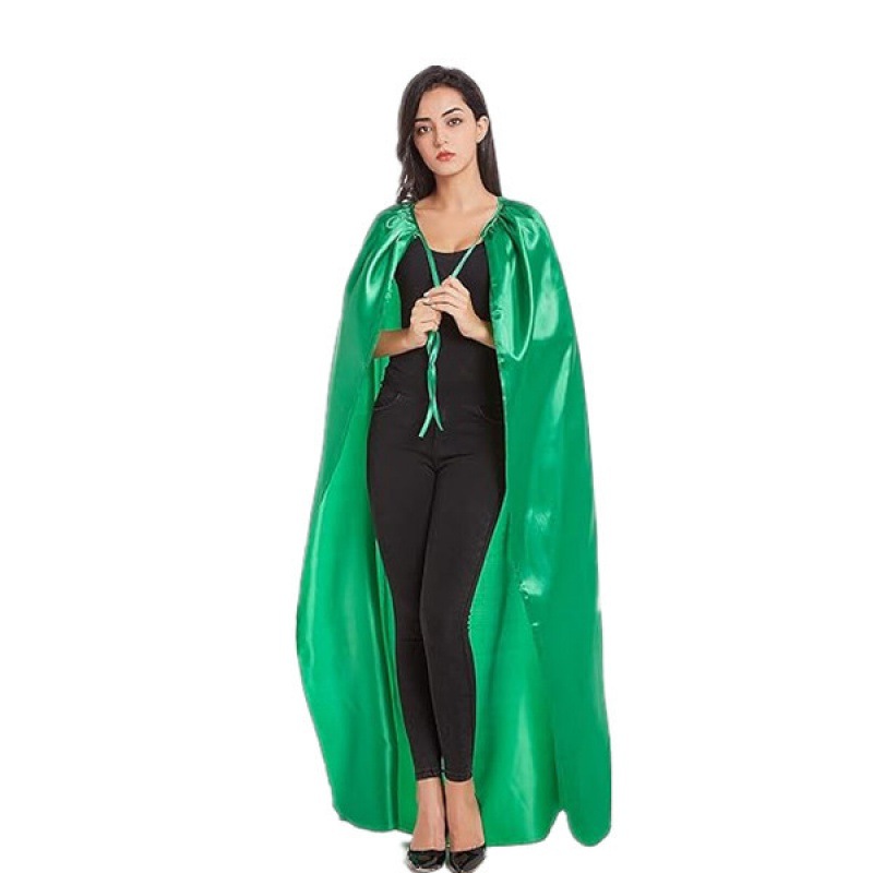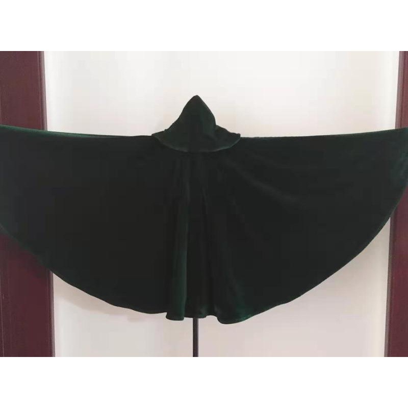 Jubah cosplay Halloween hijau tua jubah Batman penyihir bertali selendang rok besar jubah pendek topi besar