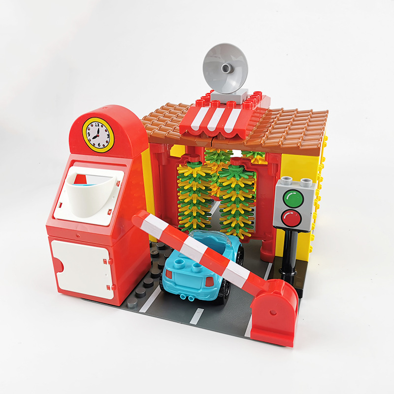 Blok bangunan partikel besar domestik suku cadang lucu cuci mobil toko gas stasiun istirahat Anak dirakit aksesoris mainan