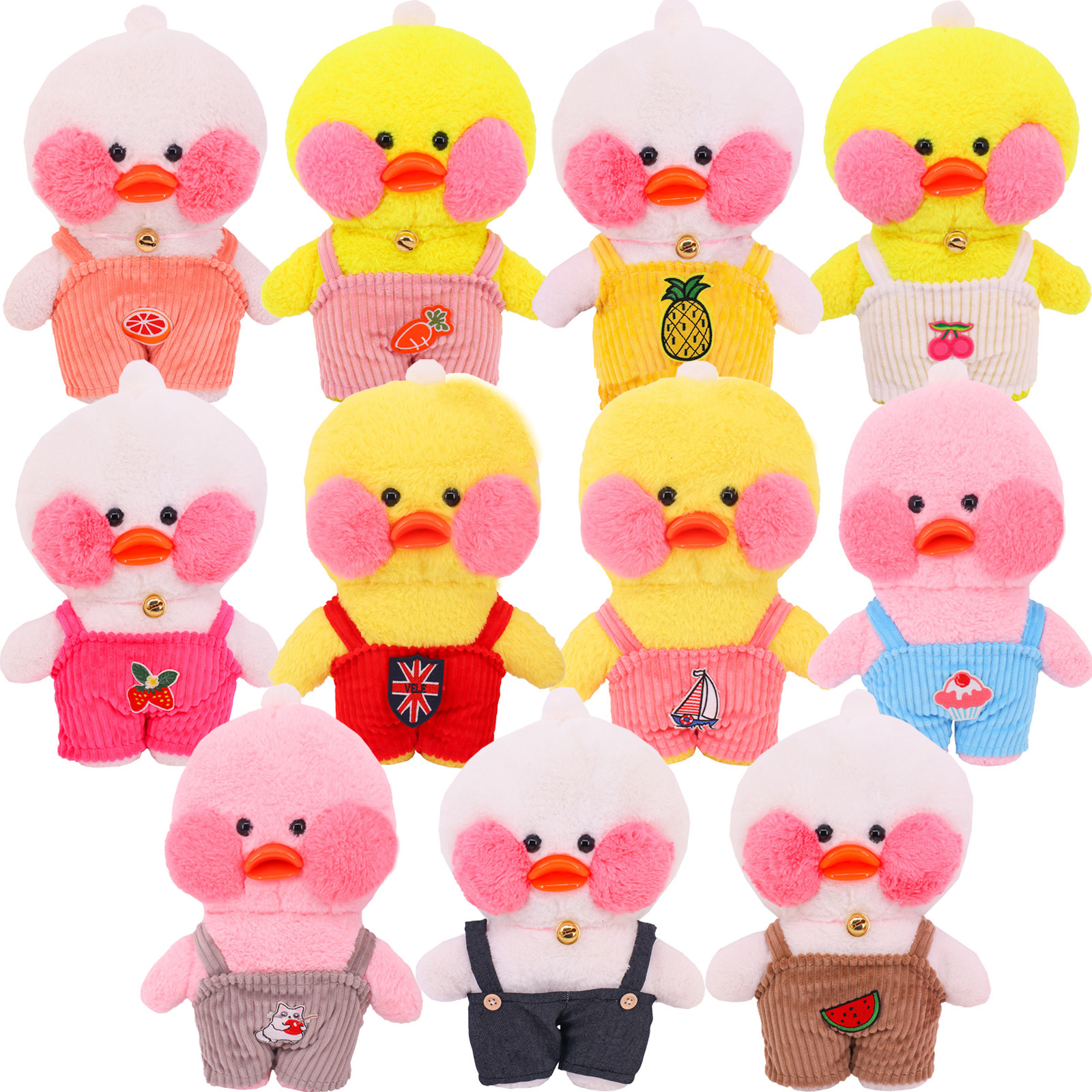 Baru 30cm mewah kecil kuning mainan bebek aksesoris hyaluronic asam bebek suspender setelan katun boneka celana suspender