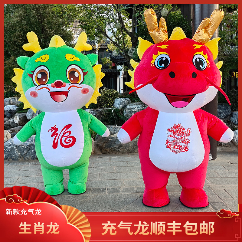 Kostum boneka naga Cina boneka binatang tiup kartun tutup kepala zodiak Naga maskot pakaian boneka hewan