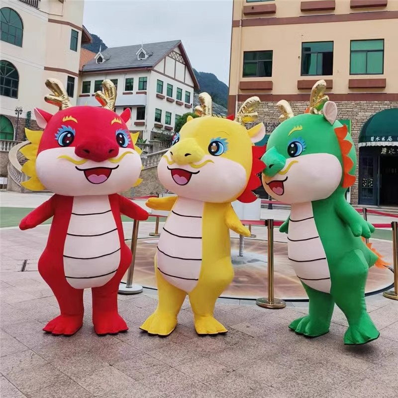 Boneka Naga tiup, kostum zodiak Naga Tahun maskot alat peraga pakaian pertunjukan orang anime baju Jalan