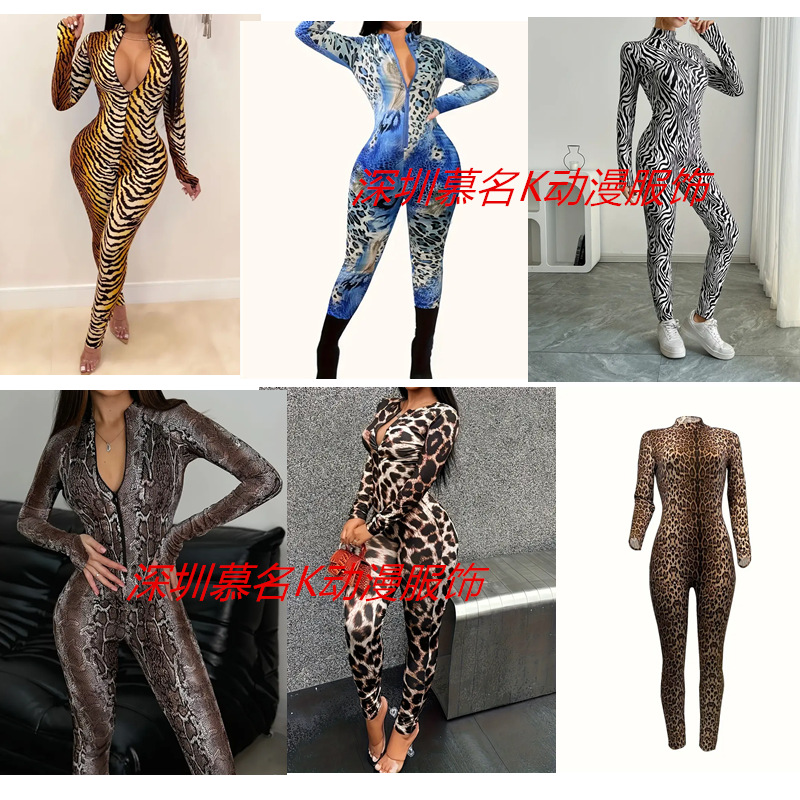 Crossborder Halloween Produk Baru Jumpsuit Macan Tutul Jumpsuit Bercorak Digital 3D Jumpsuit Permainan Orang Dewasa