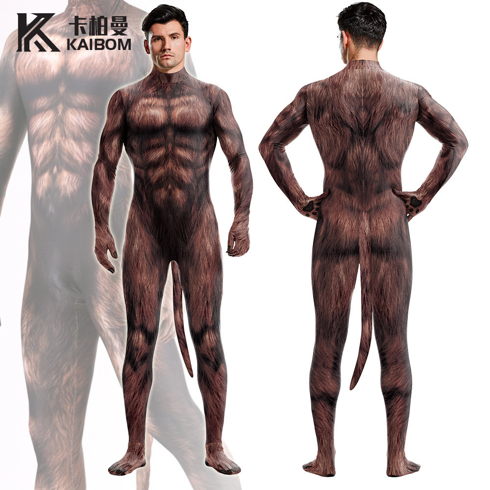 Jumpsuit ketat untuk pria, pakaian pertunjukan, jumpsuit ketat motif otot hewan baru, lintas batas 2024