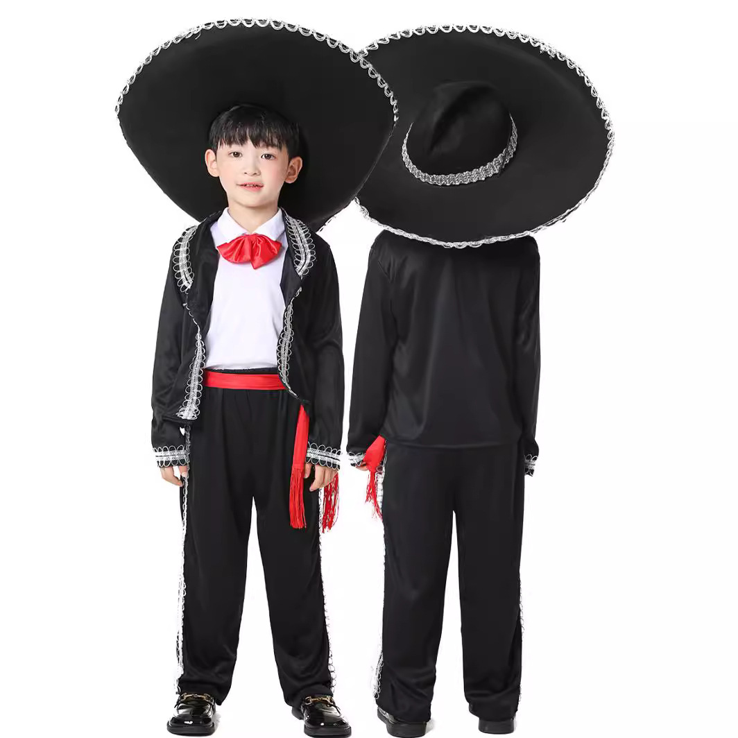 Kostum cosplay orang tua anak, kostum riasan panggung pesta festival tari etnik Meksiko