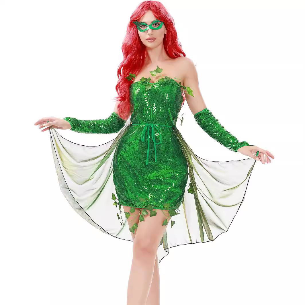 2024 penyihir dari Oz daun dewasa hijau pohon Iblis payet Halloween bermain kostum tari seksi gaun kostum