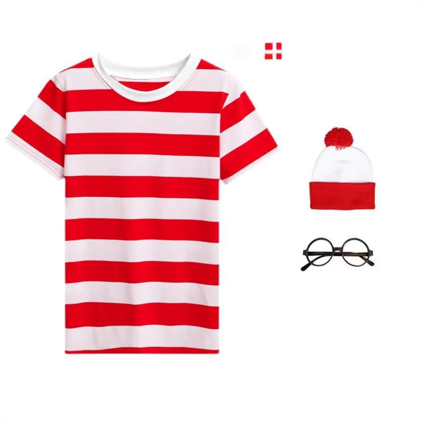 Smart Warry Where's Wally Karakter Anime Inggris Cosplay T-shirt Garis Merah