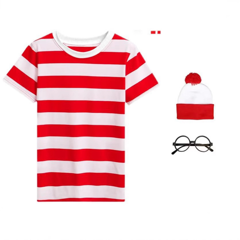 Smart Warry Where's Wally Karakter Anime Inggris Cosplay Baju Kaos Lengan Pendek