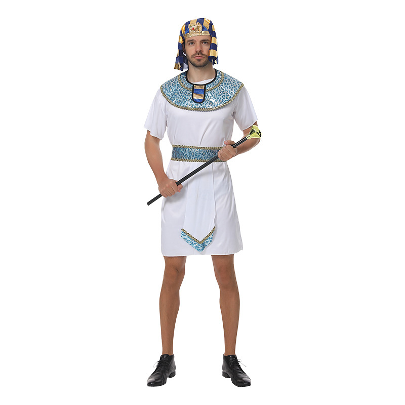 Pakaian cosplay Firaun putih pria dewasa, kostum pertunjukan cosplay Halloween