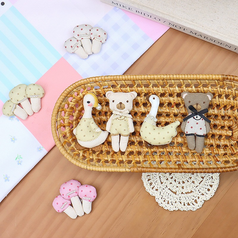 Model Baru Gaya Korea Kartun Jamur Angsa Pita Kupu-Kupu Beruang Kecil Bros Boneka Kain Lucu Aksesoris Pakaian Grosir