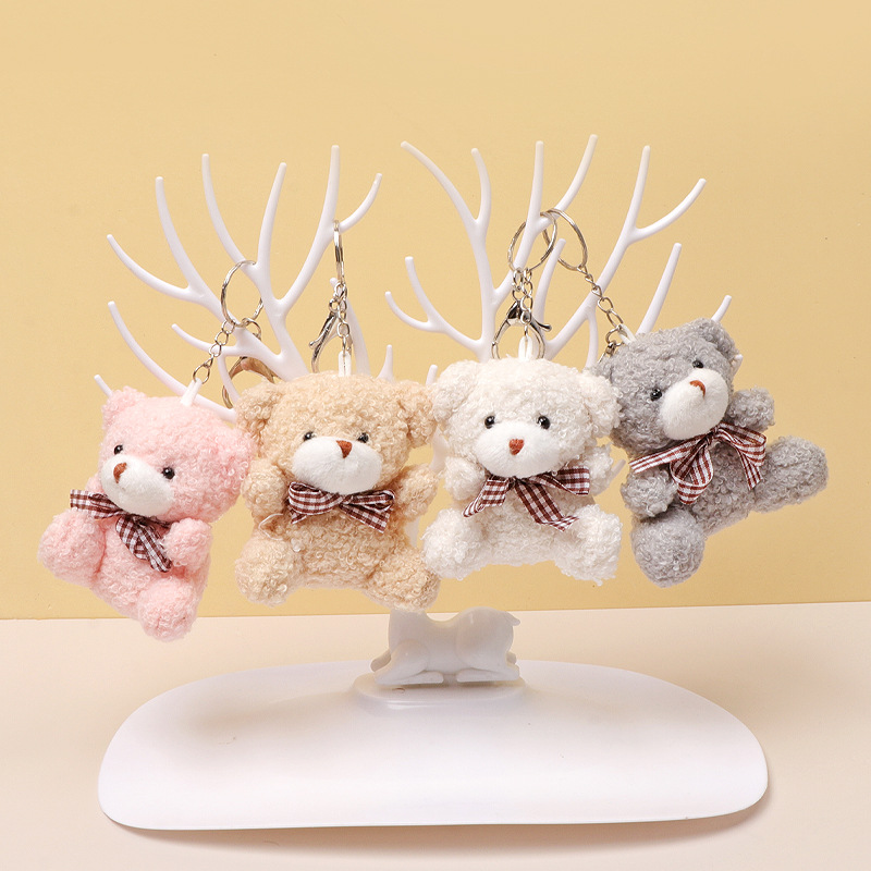 Kartun lucu mini dasi kupu-kupu beruang pendek boneka mewah tas mainan mobil gantungan kunci boneka liontin