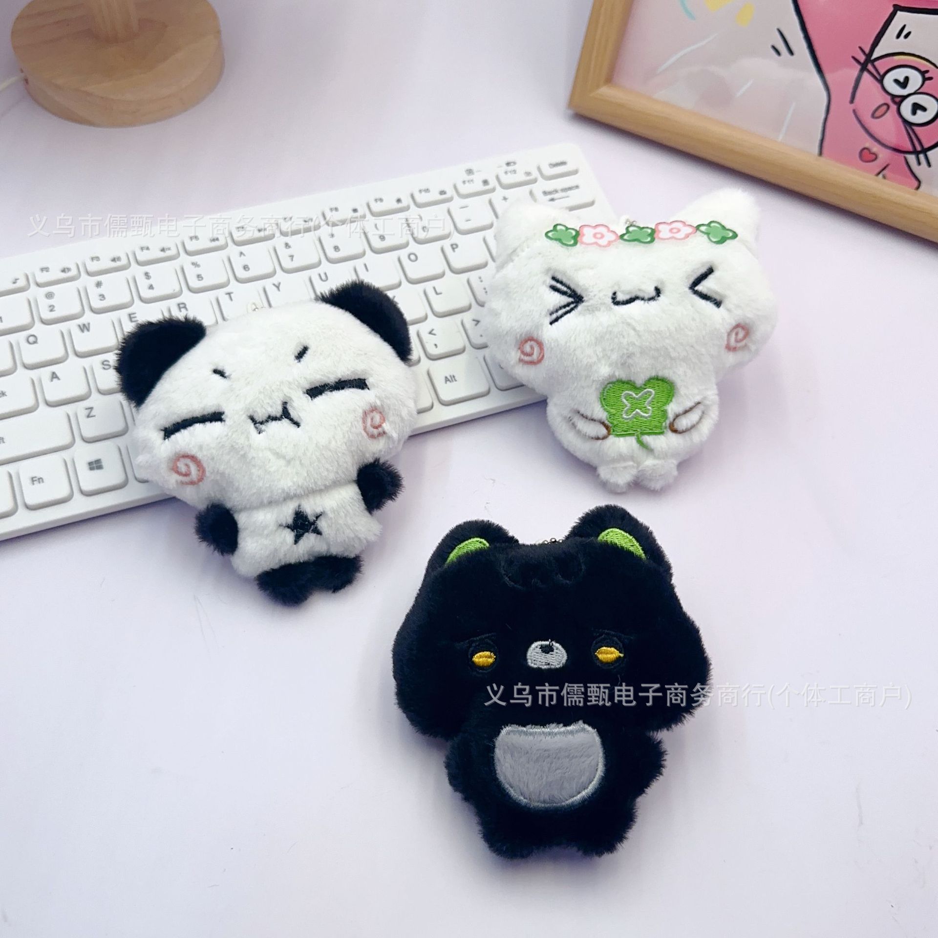卡通熊猫玩偶挂件可爱毛绒黑白猫公仔钥匙扣箱包服装饰品配件批发