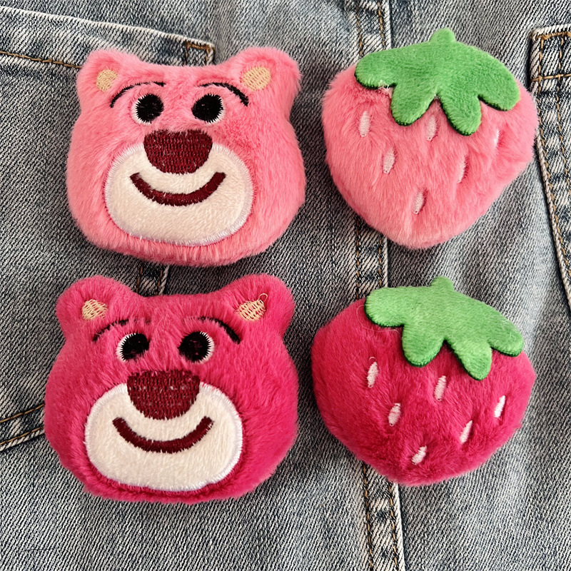Warna Merah Mawar Beruang Stroberi Kecil Beludru DIY Aksesoris Pakaian Pakaian Tas Pakaian Kaus Kaki Sepatu Aksesoris Kartun Lucu