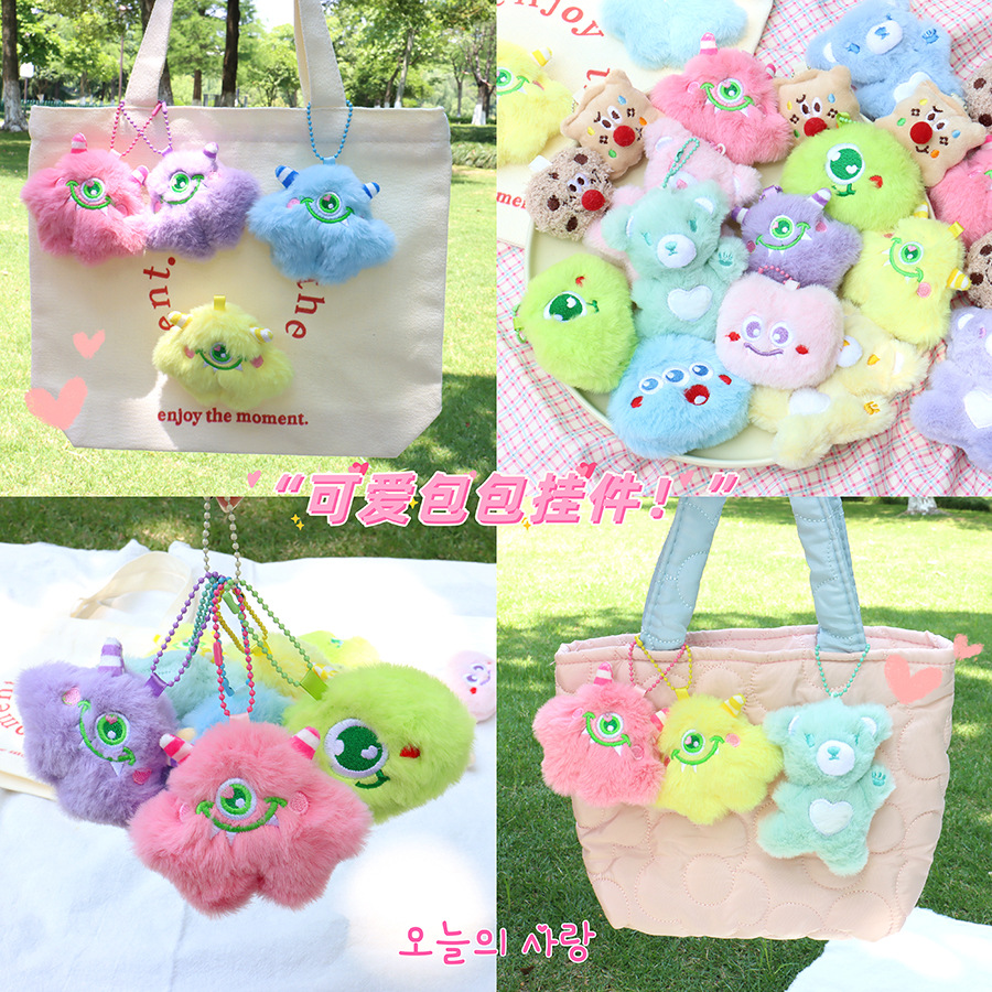 Aksesori pakaian hadiah kecil diy boneka mewah liontin tas beruang cinta monster bermata satu kartun
