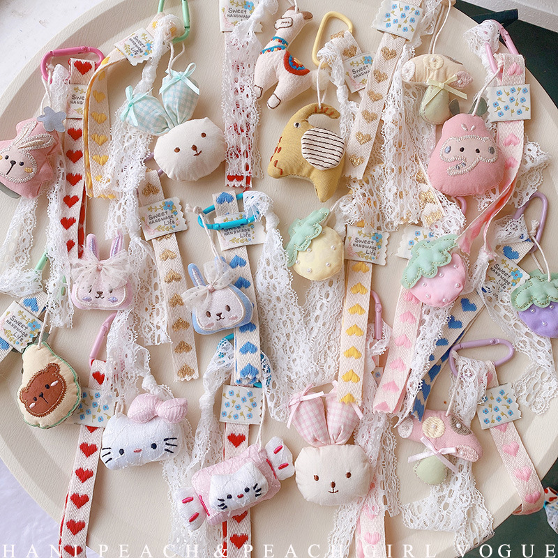 HD4458A05 Cinta Renda Kucing Gantungan Kunci Mobil Gantungan Gantungan Ponsel Tas Kain Gaya Mori Tali Gantungan