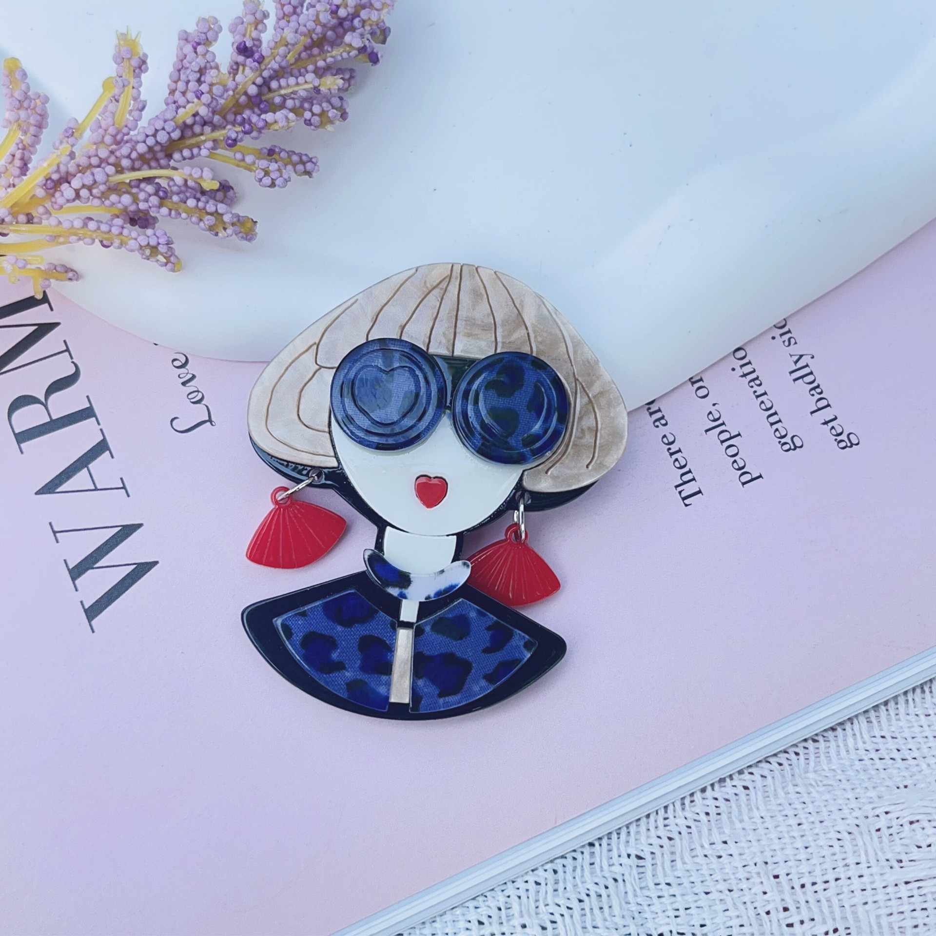 Jepang dan Korea kacamata gaya etnik lucu bros anak perempuan pin akrilik kartun setelan wanita Aksesori lencana perhiasan